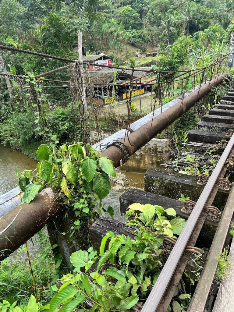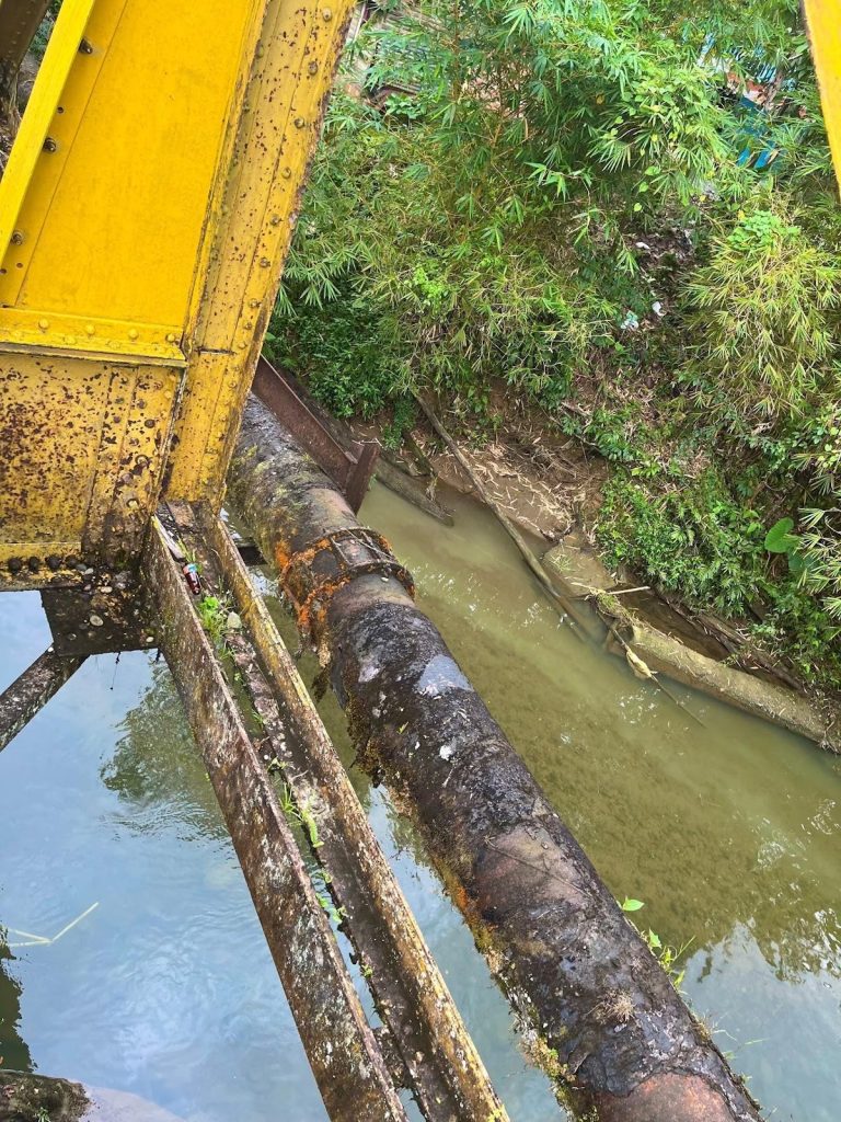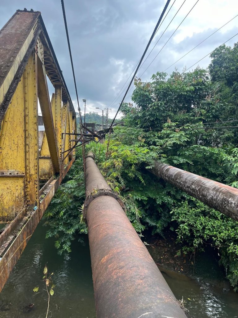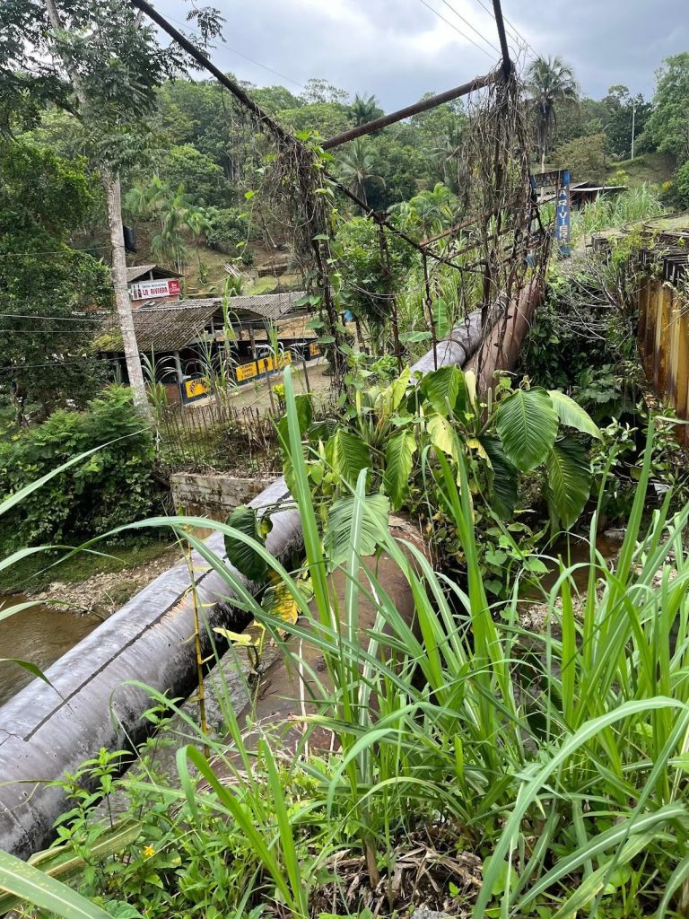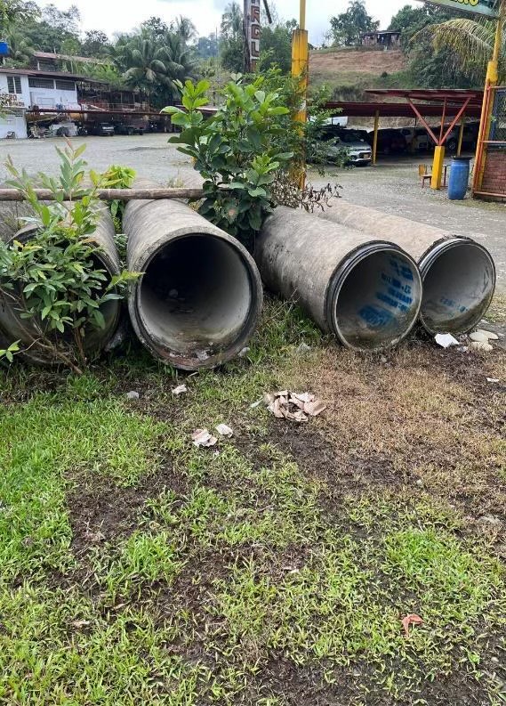 Al ingresar a la zona del río San Cipriano, se puede notar un aviso que dice que se está llevando a cabo un proceso de mejoramiento en el sistema de acueducto en el sector del río Escalarete. Sin embargo, también se observa que muchos tubos están en mal estado, debido al tiempo que han estado a la intemperie: