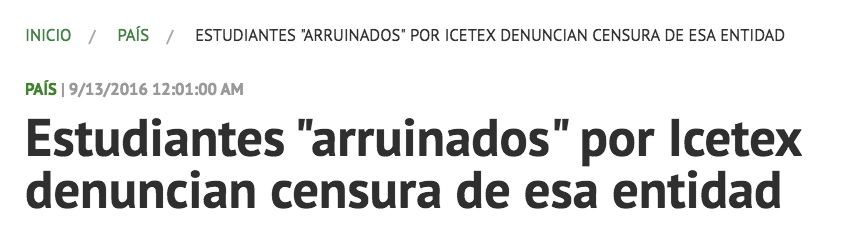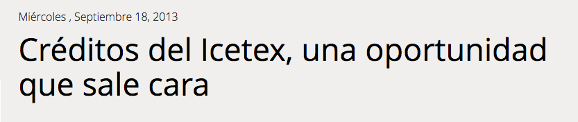 El Icetex será muy importante en los próximos años: el Acuerdo por lo Superior 2034 plantea que la mayoría de los estudiantes accedan a la educación superior mediante créditos. En 2015, las utilidades netas de la entidad fueron de 223 mil millones, más de la inversión presupuestada para el Ministerio de Cultura el mismo año. Actualmente, hay más de 400 mil deudores del Icetex. “Este es el apoyo que desde el gobierno se le da a la educación superior de los menos favorecidos: generarles intereses que se miden en millones de pesos, por permitirles acceder a la educación superior que en últimas debería ser totalmente gratuita”, dice Darío Arena, representante estudiantil al Consejo Superior de la Universidad de Caldas.