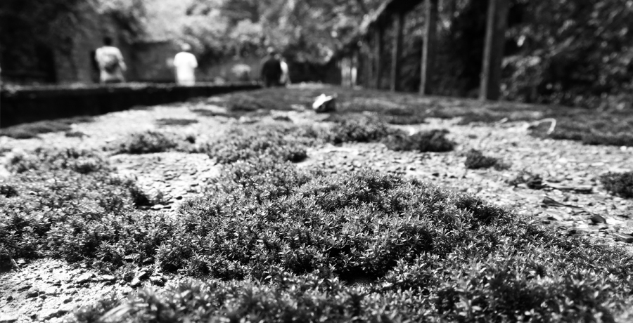 Desde la entrada el lugar es abrumador. Los pasos se tornan pesados, la selva murmurante. Los últimos rayos del día entran por los espacios que dejan las hojas y las ramas. El suelo y las paredes mohosas asienten el tiempo que anda a paso lento.