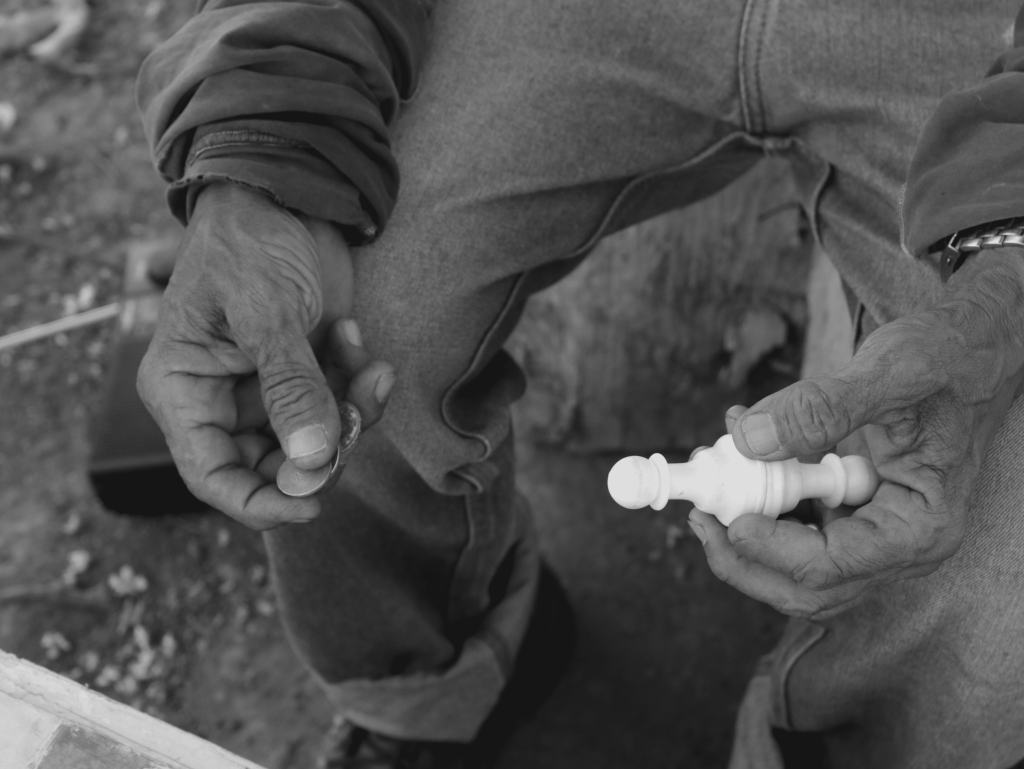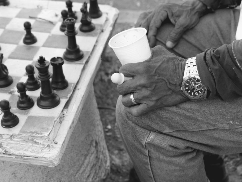 Antes de que conversáramos tuve la oportunidad de observarlo mientras jugaba una partida rutinaria con uno de sus compañeros contemporáneos. Se da comienzo al juego y ambos dan inicio a un diálogo pausado y silencioso por medio del tablero. El patrón marcado de las venas de las manos de don Adison y las casillas rascadas del tablero de ajedrez evidencian el rastro de muchas partidas jugadas… Sus manos se mueven tremulantes, pero con seguridad.