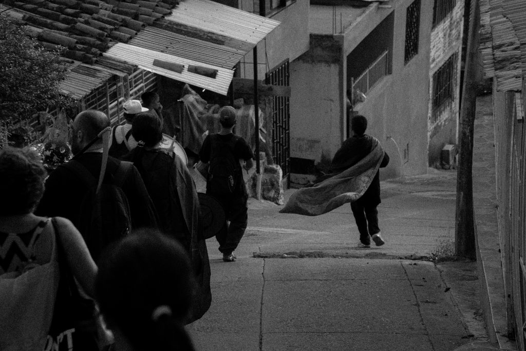 ¿Qué celebran o lloran? Me pregunto qué hay en esa Loma inmensa. Me atrevería a subir, pero de allá se ha dicho mucho y poco es agradable. Aunque del oriente mío dicen lo mismo. Allá los pelaos míos se inventaron un campeonato grandísimo de fútbol y básquet en las canchas, que ellos mismos terminaron de construir. También están las casas donde nos dan comida a todos, esas ollas comunitarias. Creo que está eso y se me pasarán un montón de cosas más que no recuerdo porque no mantengo en la casa, solo trabajo y trabajo. La verdad sí quisiera saber qué hacen allá arriba, cómo se ve mi casa desde La Estrella, hasta imaginarme pasando por la quinta en la bicicleta con mis barriles amarrados sobre la parrilla. La verdad es que sí quisiera conocer algo de allá. Darle la cara a La Estrella, comerme un bonyurt en frente suyo y reírme de la abejita de CONAVI mientras le echo ese cuento a cualquier aparecido o aparecida que vea.