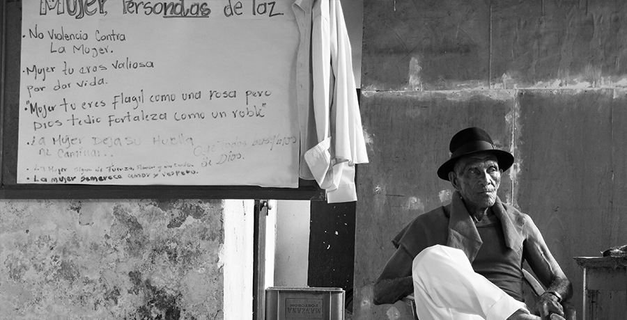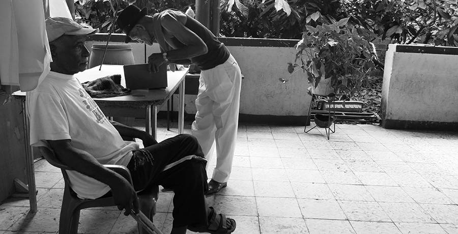 Las inevitables carcajadas atraen a Luis, que con caminar pausado entra al salón, calzando unas sandalias negras y empolvadas. Un tejido blanco ha comenzado a invadir sus ojos, que miran con cierta desconfianza y parecen estar a punto de llorar de alegría todo el tiempo. La malicia de la que me hablaron antes está encarnada en esa mirada. La misma que tenía en vida el Maestro Ananías Caniquí, otro reconocido machetero que enseñaba el arte en las veredas cercanas a Santander de Quilichao.