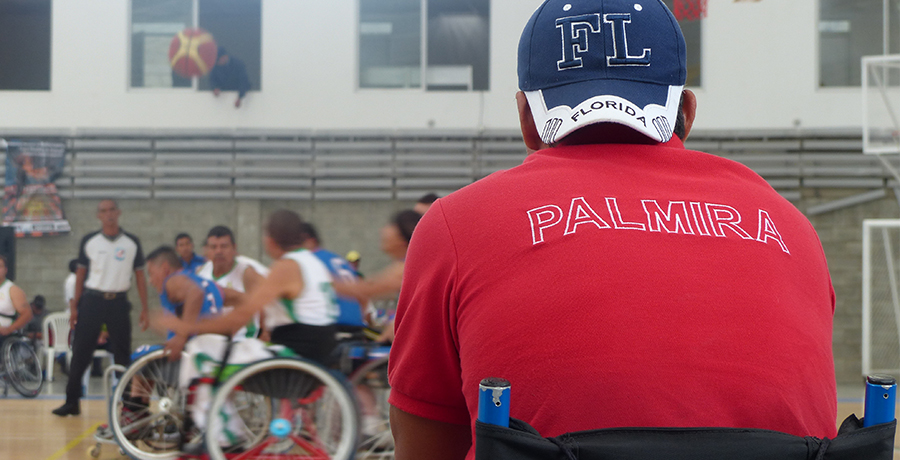 Es media mañana y el sol pega fuerte en la Alcaldía de Palmira, un edificio de fachada cuadriculada y nueve pisos color crema dispuesto frente al parque principal de la ciudad. Livintong Grueso, un morocho alto, entrenador del club de baloncesto adaptado Te ayudamos, camina por una rampa de acceso junto a seis de los muchachos del equipo, quienes suben con dificultad en sus sillas de ruedas.